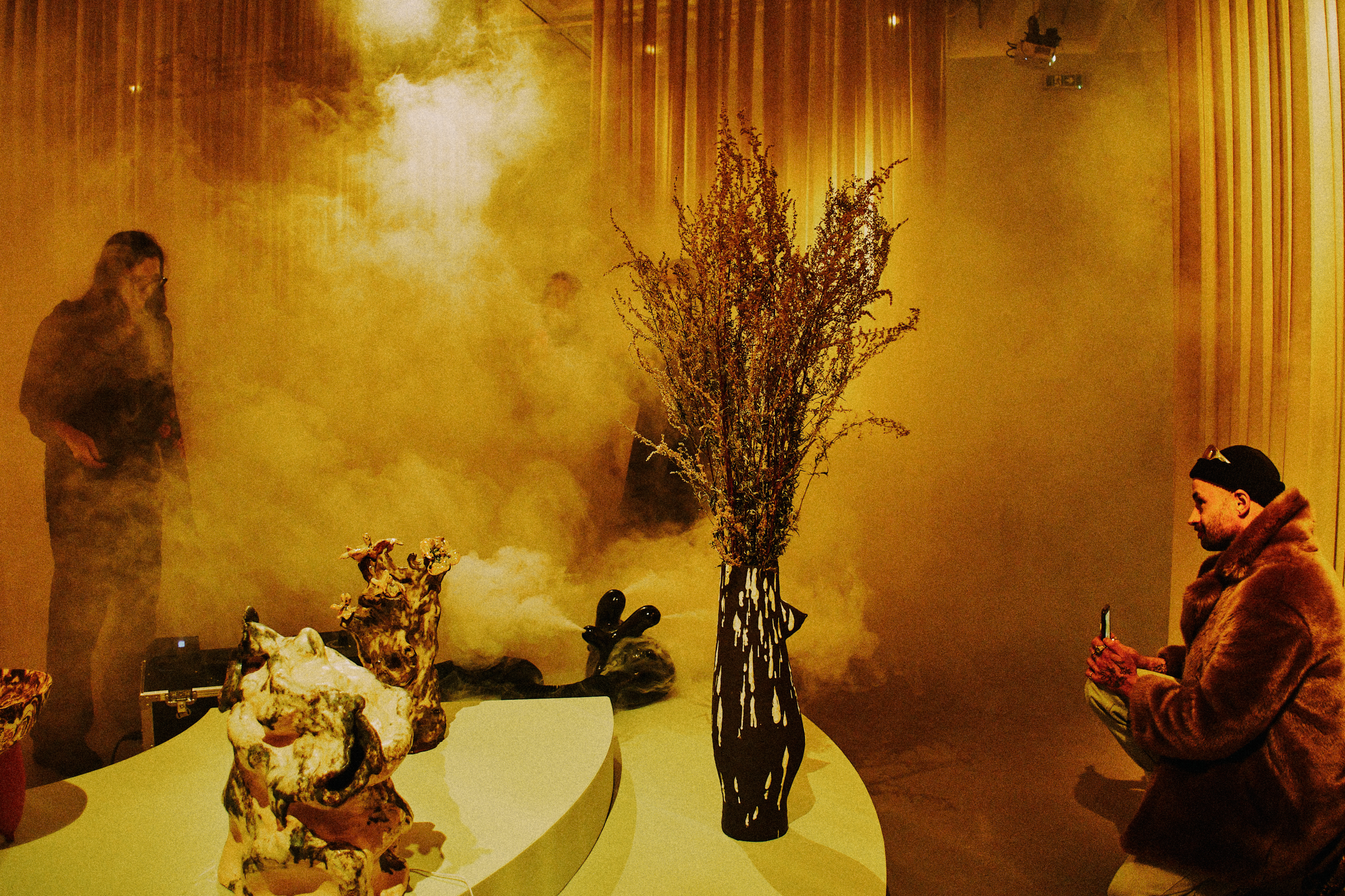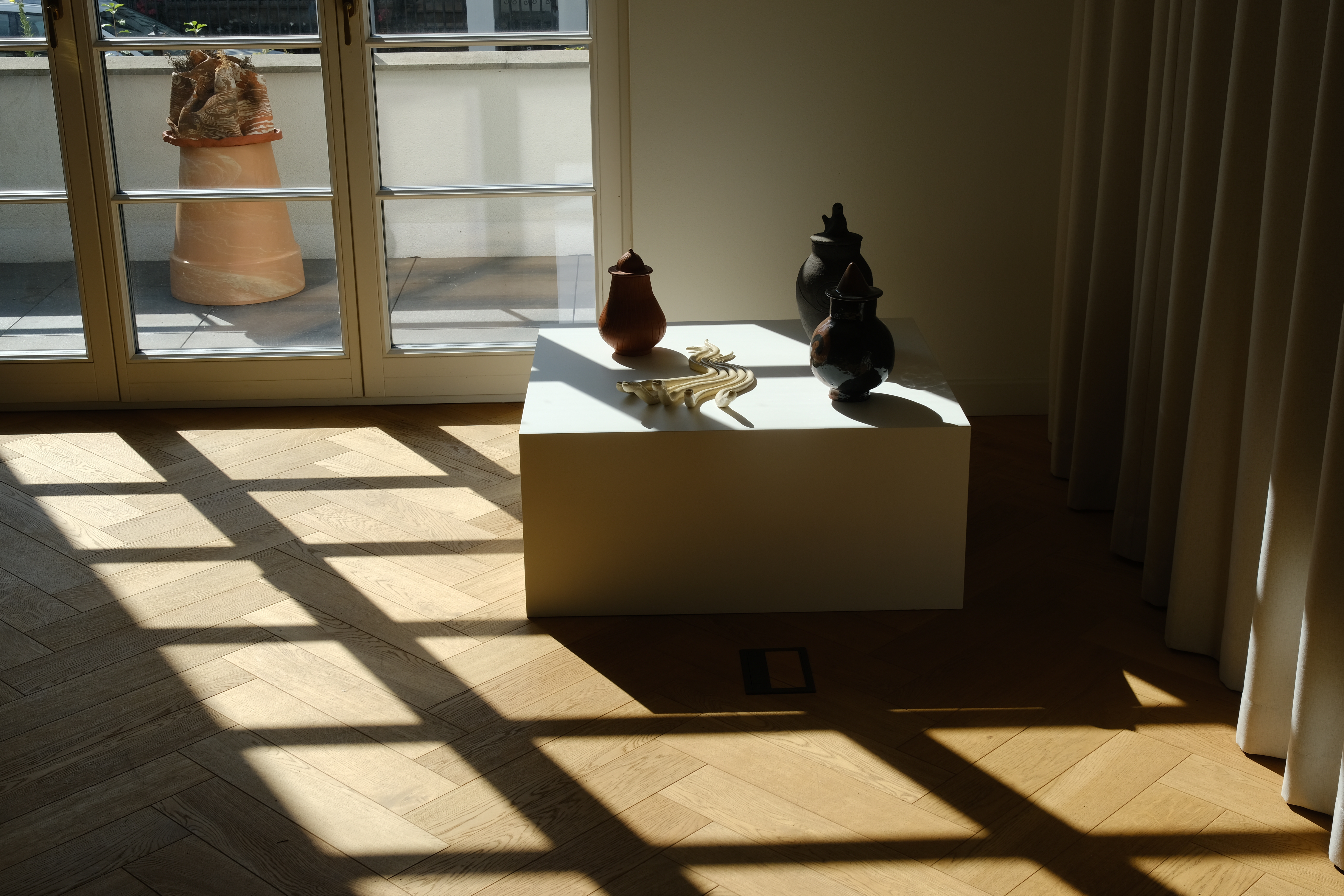 While textiles are associated with warmth and flexibility, ceramics formed from soft clay radiate a cool fragility. Yet both media bring to life an aesthetic language that shifts between hard, soft, unwieldy, and flowing. The materials, shapes, and significance of the selected works reveal a broad spectrum of ambiguity, vagueness, and simultaneity.